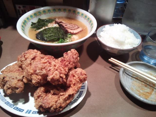話をラーメンに戻すと、京都のラーメンはご飯ものとのセットが定番であったり、おかずがたくさんついたりする点も特徴です。この写真の「唐子(からこ)」さんでは、握りこぶし大のからあげが3個ついてくる上に、カウンターに並んだおばんざい(お惣菜)も好きに食べて良い、という腹ペコ学生に嬉しい店になっています。